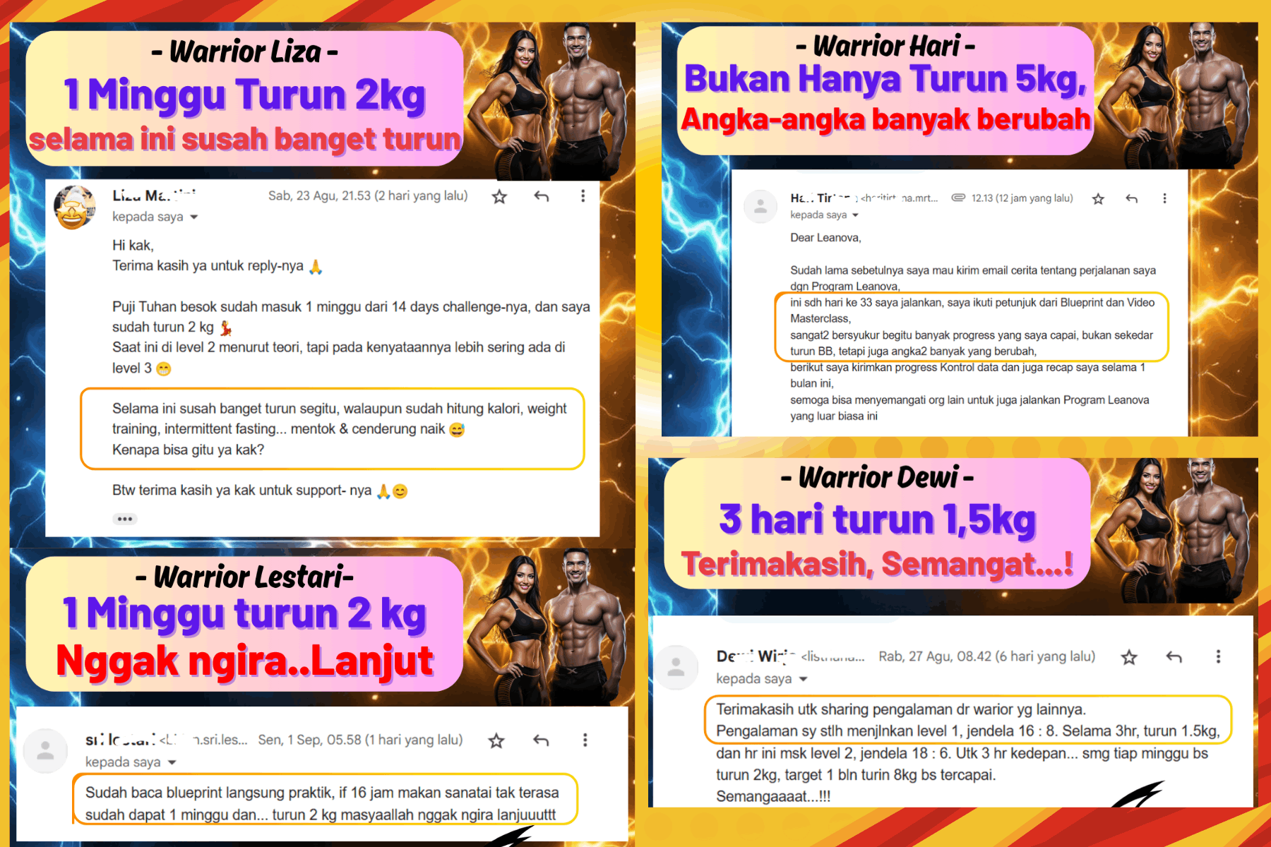 Dengan Blueprint Leanova, kamu tidak hanya mendapat panduan tertulis. Kamu bergabung dalam komunitas eksklusif Warriors yang saling mendukung perjalanan transformasi.